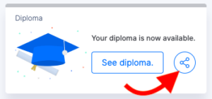 - Haz clic en el icono de compartir para compartir tu diploma en LinkedIn.