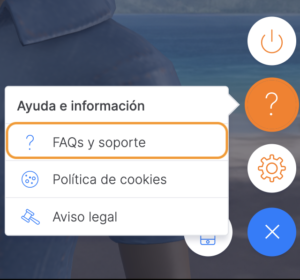 - Haz clic en el símbolo de ayuda ([?]) y selecciona la opción «FAQs y soporte». Desde ahí podrás visualizar tanto los artículos de ayuda como el formulario para contactarnos.
