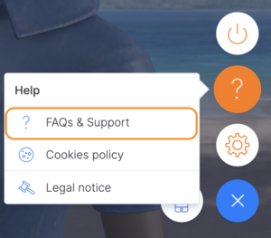 - Click on the help symbol ([?]) and “FAQs & Support”. From there, you can access the help articles and the contact form.