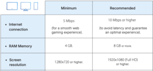 For a smoother experience, we recommend using a computer instead of a tablet or mobile, as the connection is usually more stable. However, if you want to play from a tablet or mobile, make sure the device meets these technical requirements:
