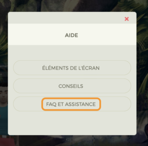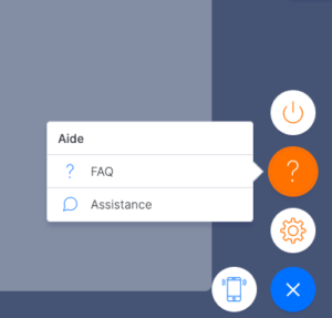 - Cliquez sur le symbole d’aide ([?]) et sélectionnez l’option « FAQ » pour consulter les cas résolus les plus courants ou « Assistance » pour nous contacter directement.