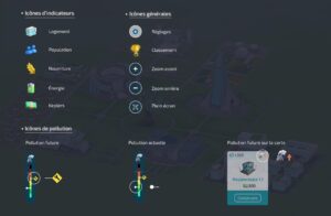 - Bâtiments commerciaux : la récompense générée par ce type de bâtiment peut être perçue tous les jours tant que le niveau de pollution ne se trouve pas dans la partie grenat ou la partie noire.