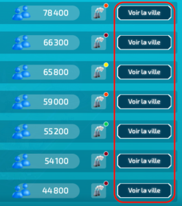Sur l’écran principal, cliquez sur la coupe dorée pour accéder au classement. Une fois à l’intérieur, le bouton « Voir la ville » s’afficher à côté du nom de chaque participant·e du jeu.